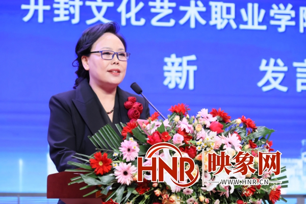 沈洁霞致欢迎辞,代表学校师生对前来参会的领导、嘉宾表示热烈的欢迎,对长期以来关心支持学校发展的社会各界朋友表示衷心的感谢。她表示,河南省新闻传播骨干职业教育集团是经省教育厅批准,由开封文化艺术职业学院牵头,联合相关政府机构、行业组织、企事业单位、职业院校、研究机构和社会组织,自愿组成的职业教育联合体与利益共同体。希望集团成员单位共同围绕国家和我省新闻传播事业、产业的需求,不断深化合作,将集团建设成为具有全国影响力、特色鲜明的职业教育创新发展高地,为出彩河南建设提供有力的技术技能人才支撑和智力支持。