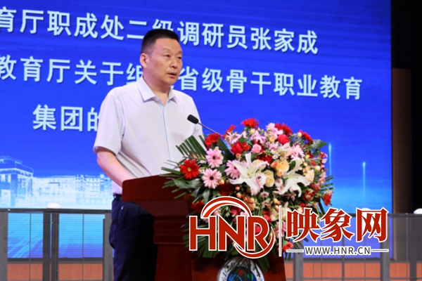 张家成宣读《河南省教育厅关于组建省级骨干职业教育集团的通知》