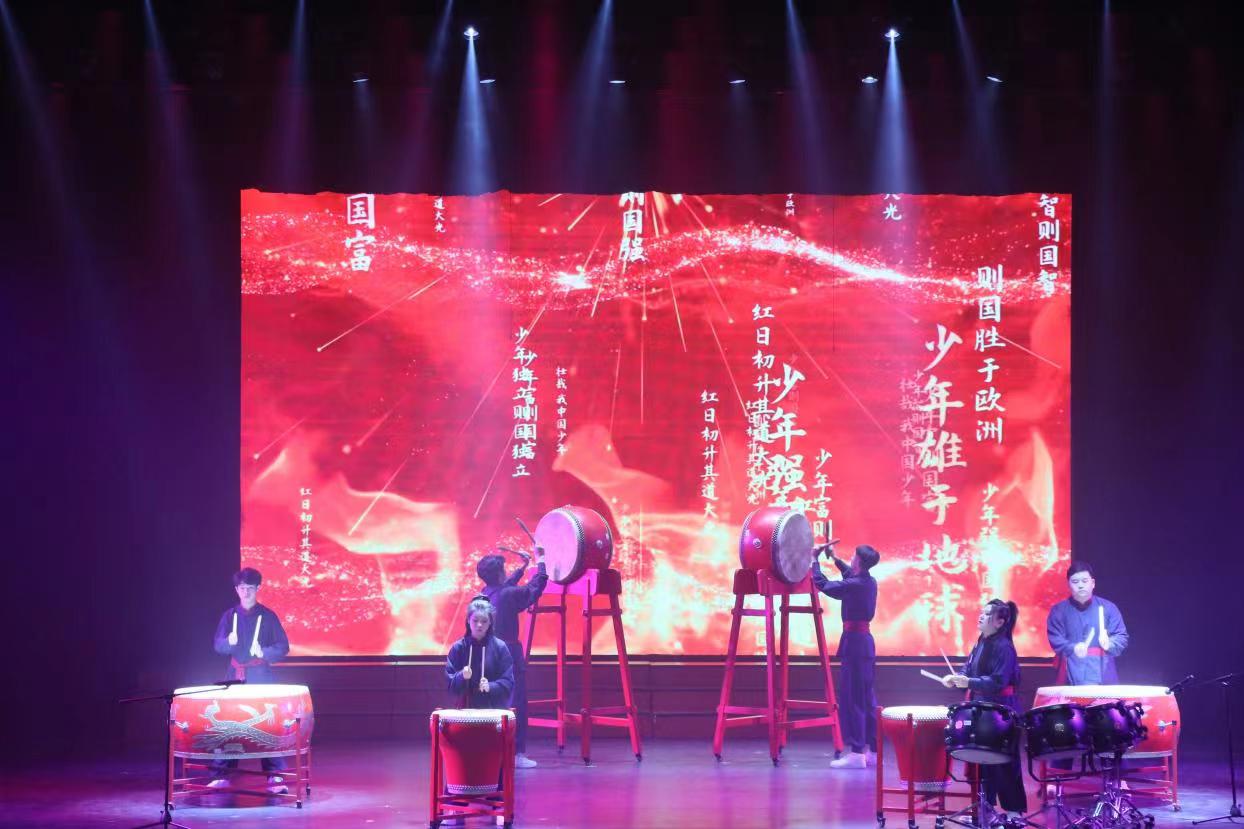 第二篇章《追寻》。舞蹈《十八焕蝶》又名《梦蝶飞舞》,舞者手中的绸扇如玲珑素雅的凤蝶,成双成对地在花间追逐,临风飘动,舞姿优美轻盈,令人神往。翩翩彩蝶如立志坚守的梦想,轻舞飞扬,生生不息;曼妙舞姿是对职业技能的追求,孜孜不倦,灼灼其华。民族打击乐中国鼓四重奏《鼓韵》是音乐学院打造的民乐传承与创新的特色代表作之一,其鼓声如惊雷般铿锵有力、催人奋进,在追寻梦想的道路上带来无穷的精神和力量。鲜衣怒马少年时,不负韶华行且知。追寻是学子们努力的决心,是人生航程中坚持不懈的梦想。