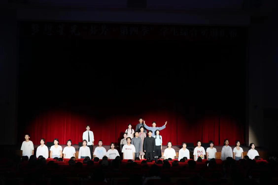 《彩虹》为第三篇章。男生群舞《戈壁沙丘》,以草原自然环境为主题,展现了草原的孩子对故乡浓浓的深情。舞者用手中的酒囊,将悲痛、愤怒的情感表现到极致,极大限度地增强了舞台的视觉冲击力。民乐合奏《袖梦》美轮美奂、极具特色,唐乐的音律结合流动的线条,水袖舞姿行云流水、空灵曼妙,刚柔并济、人袖合一的丝丝情意,春风化雨、扣人心弦,引得观众掌声不断。纤纤不绝林薄成,涓涓不止江河生,享受青春美好,收获成功喜悦。莹莹星光,汇成璀璨星河。理想经受风雨洗礼,终将变成生命中最耀眼的一道彩虹。