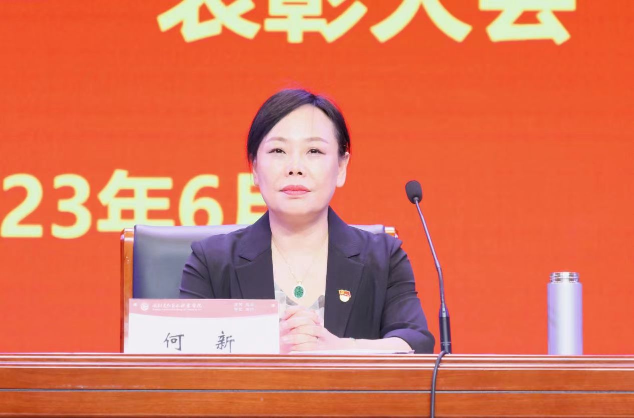 何新宣读《中共开封文化艺术职业学院委员会关于表彰2022年度“两优一先”的决定》《关于表彰2022年度“学习强国”学习平台“学习之星”的通知》。