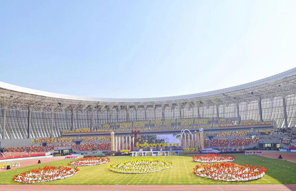 映象网讯(大象新闻记者 崔学庆)10月24日上午,开封市第十一届运动会开幕式在开封体育中心举行。开封文化艺术职业学院五年制大专部700名学生进行大型文体表演。学校党委书记沈洁霞、校长何新,五年制大专部班子成员及全体班主任老师参加开幕式。
